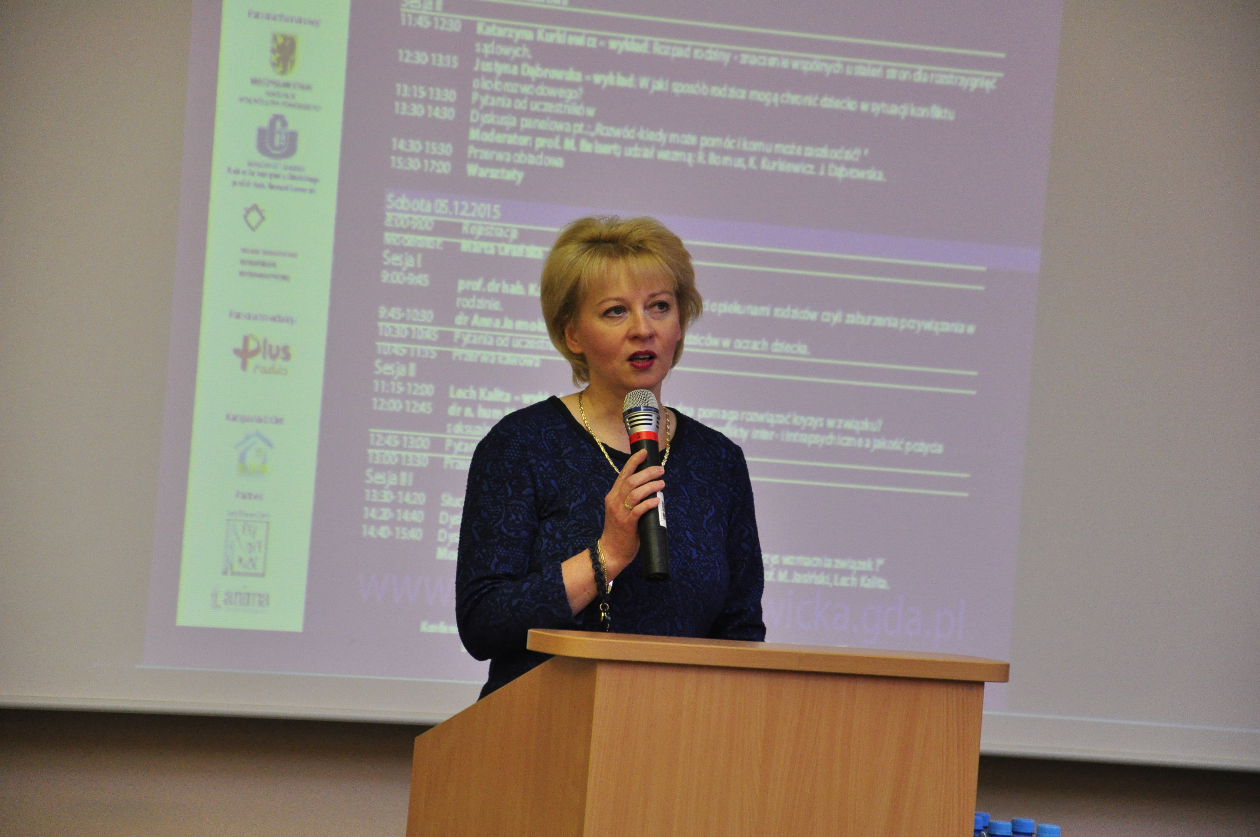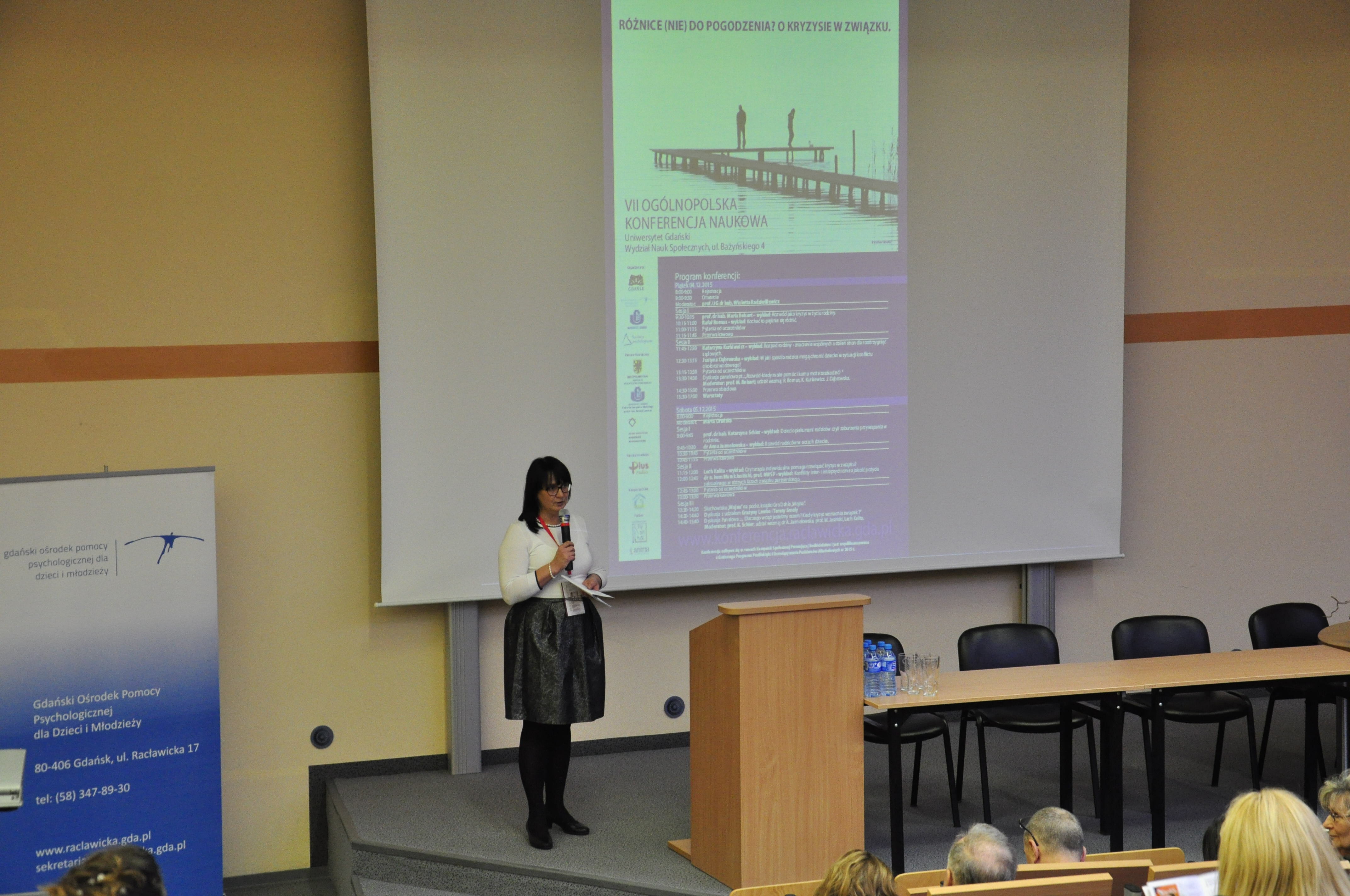 Uroczyste otwarcie Ogólnopolskiej Konferencji Naukowej z udziałem gości zagranicznych „W stronę adolescenta. Perspektywa teoretyczna i praktyka terapeutyczna” przez Wiceprezydent Miasta Gdańska Ewę Kamińską i prof. UG dr hab. Hannę Brycz